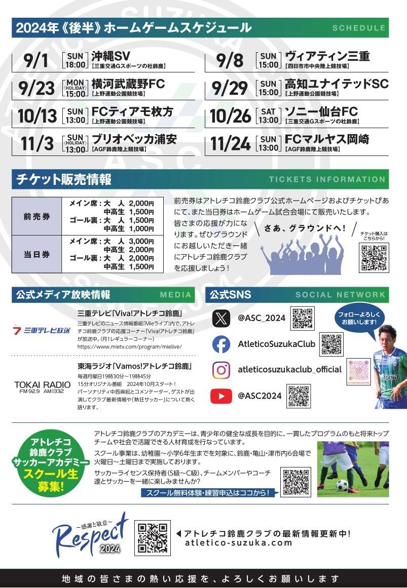 地元サッカークラブを応援しよう 2024/09/10 【配信アーカイブ】 “キングカズ”こと 三浦知良選手が加入した 地元サッカークラブ アトレチコ鈴鹿クラブ(旧 鈴鹿ポイントゲッタース)の試合が 四日市緑地公園陸上競技場で開催されました。 対戦相手は同じ三重県のチーム ヴィアティン三重。 三重ダービーということで、いつも以上に応援に力が入ります。 結果は、アトレチコ鈴鹿クラブの勝利! 楽しい時間でした♪ 今年も地元サッカーチーム アトレチコ鈴鹿クラブ を応援していきたいと思います!! ひとりごと